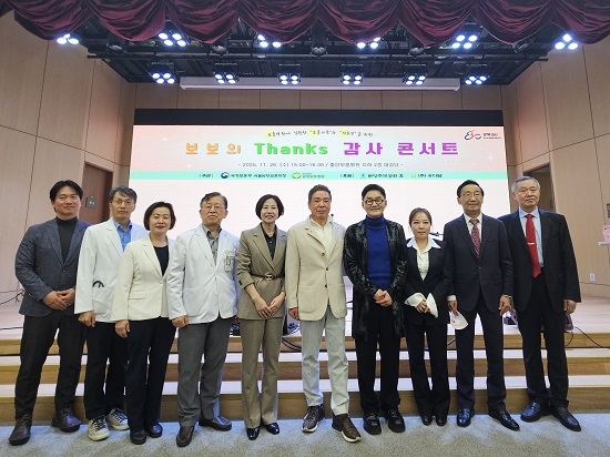 국가보훈부 서울남부보훈지청(지청장 염정림)은 11월 26일(수) 15시부터 16시 40분까지 중앙보훈병원 지하 2층 대강당에서 「보보의 Thanks 감사 콘서트」를 개최했다. 이날 행사에는 보훈가족과 보훈병원 의료진 등 300여 명이 참석해 성황을 이뤘다.